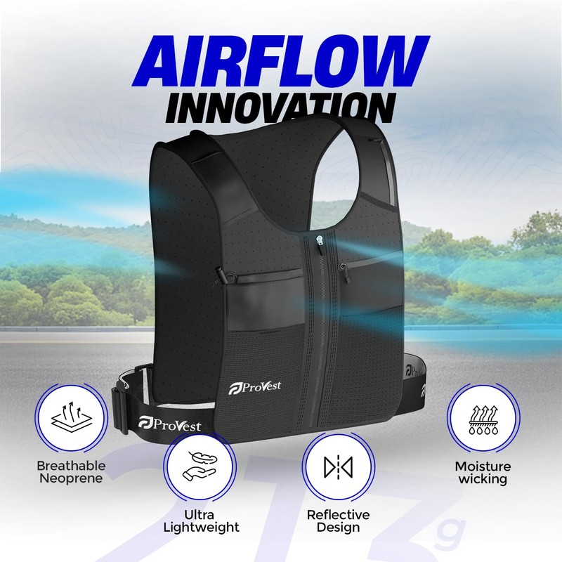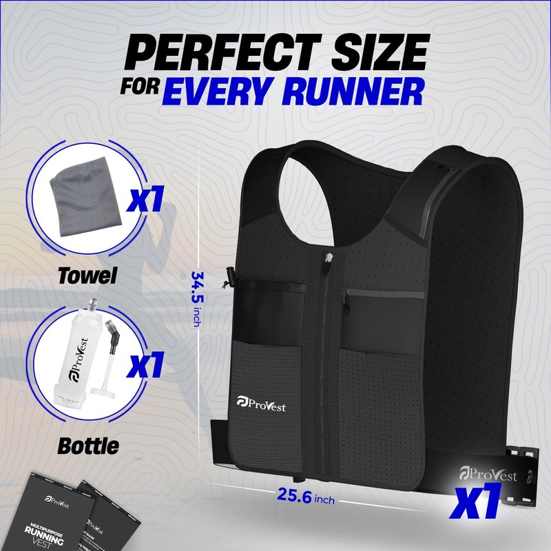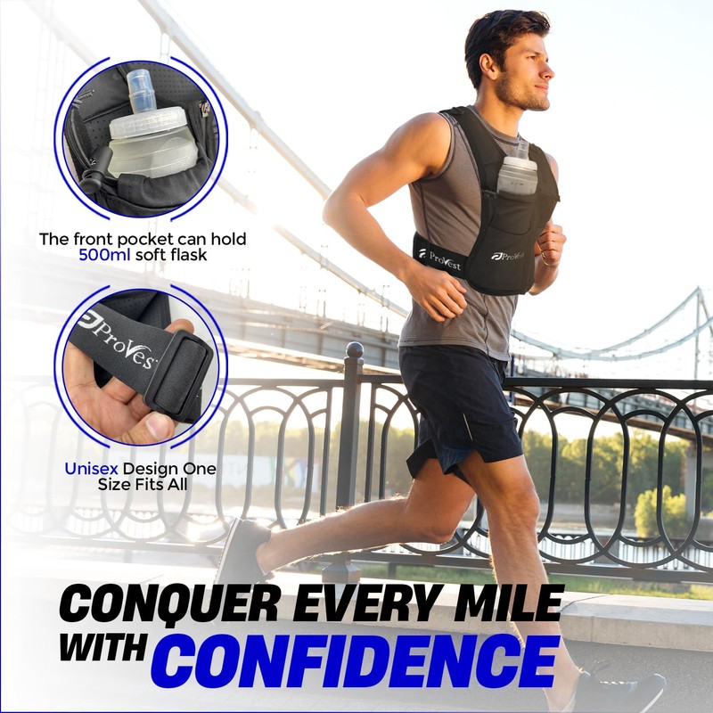 Discover the ultimate in comfort and functionality with the PROVEST Running Vest. Perfectly designed for your active lifestyle, this lightweight hydration pack weighs just 268g, offering optimal performance during your runs. Crafted from high-quality materials, including durable neoprene padding and breathable mesh, the PROVEST Running Gear ensures a comfortable fit that adjusts perfectly to your body. It's designed to enhance airflow, keeping you cool and focused on your workout. With 8 exterior pockets, this versatile running vest for women and men provides ample storage for all your essentials, from phones and keys to energy gels and snacks. Stay organized and prepared for every mile. As a special bonus, the PROVEST includes a collapsible soft water bottle and a high-quality towel, ensuring you stay hydrated and fresh throughout your training sessions. It’s the perfect companion for your running journey. Backed by our satisfaction guarantee and lifetime support, the PROVEST running gear is built to last and designed for your peace of mind. Join countless satisfied customers who rely on our commitment to quality and performance. Happy Shopping!