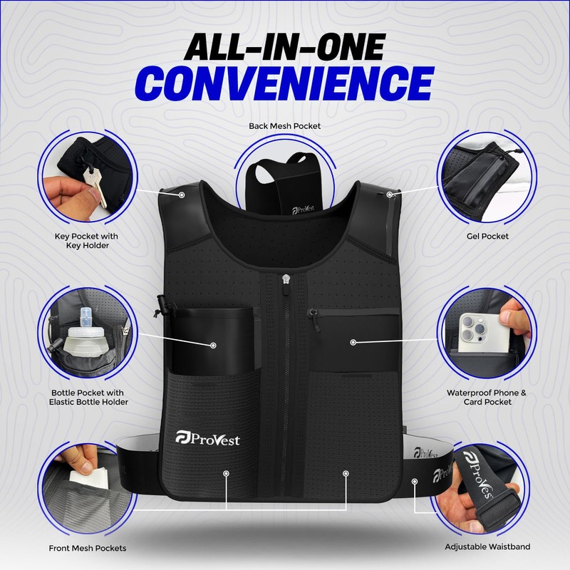 • ✅Multiple Storage Options: Designed with 8 exterior pockets, the PROVEST running hydration vest includes specialized compartments for a phone, keys, cash, and more, ensuring easy access and convenience while on the move.