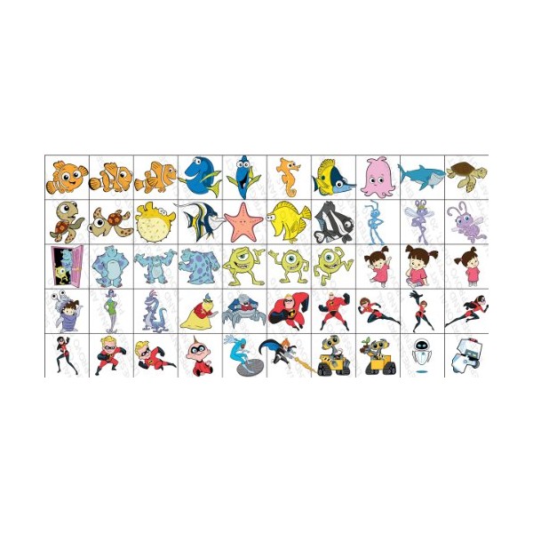 - Includes images from finding nemo, a bug's life, monsters, inc, the incredibles, and wall-e