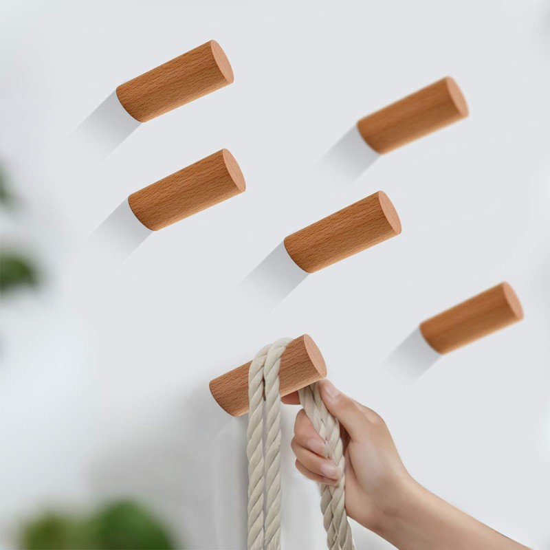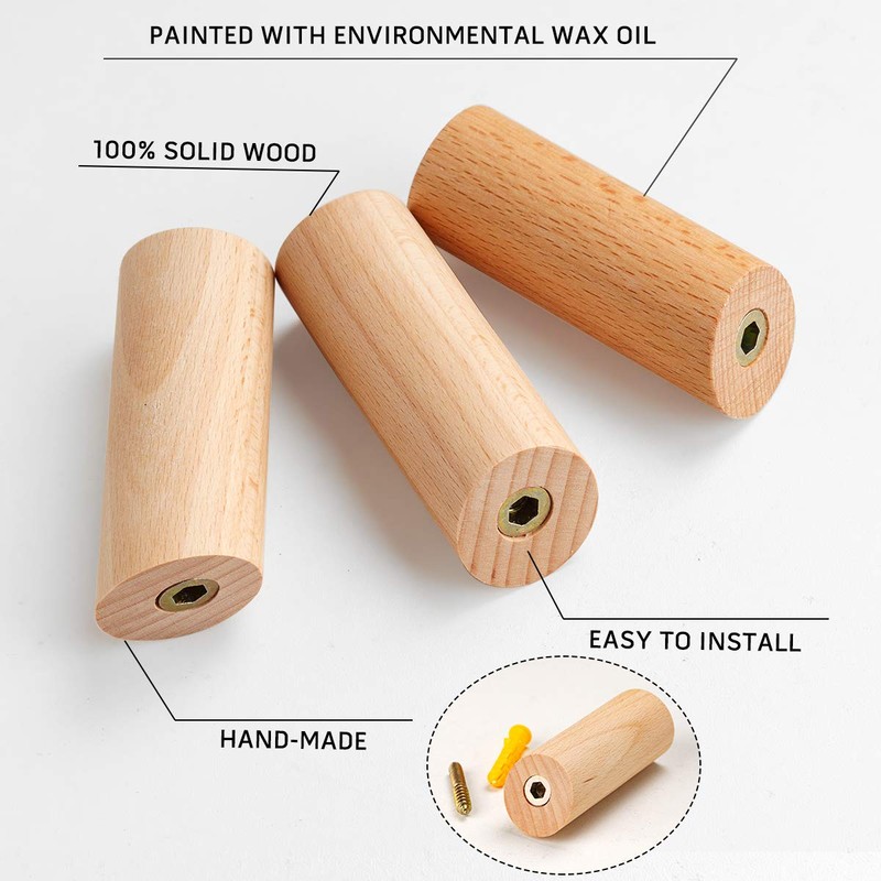- NATURAL & HANDMADE Wall hooks are made of 100% natural wood material, environmentally friendly and healthy. The surface is coated with natural wax oil, which can better protect the wardrobe and make the edges more durable and smooth.