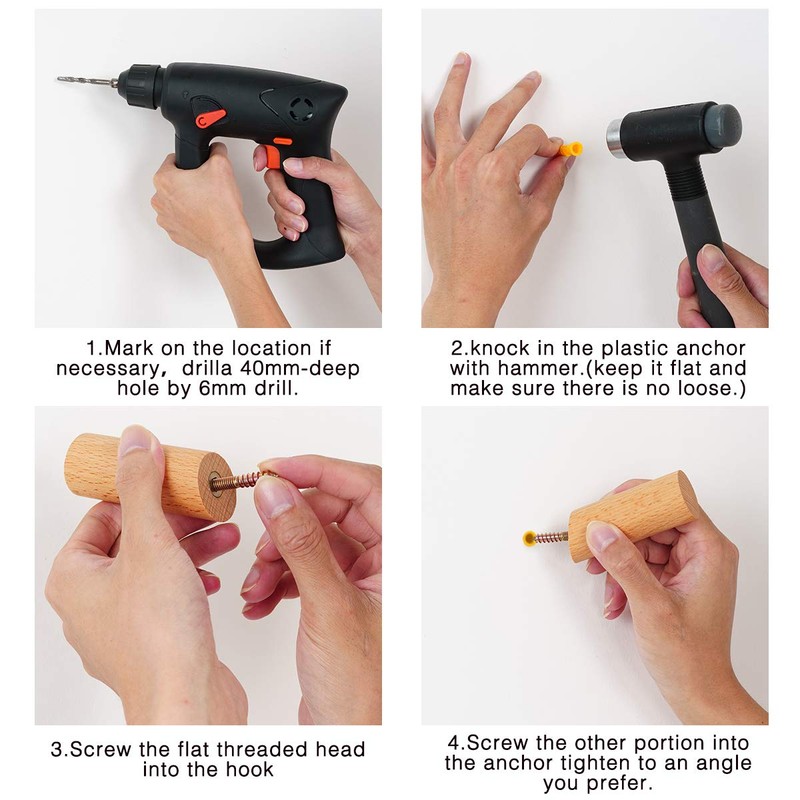 - Easy Installation Just drill a hole and insert a wall anchor and screw it tight. If you have any questions, please feel free to contact us.