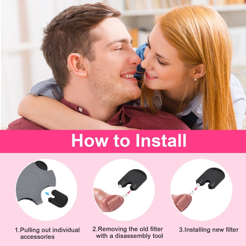 - Easy to use: first remove the old filter with the black remover. Then place the new filter on the hearing aid.