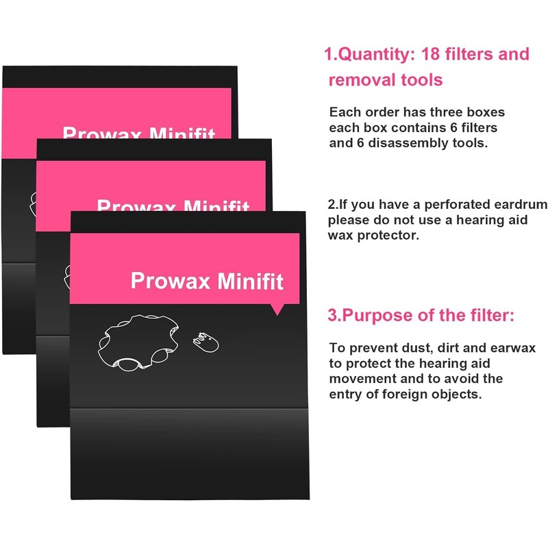 3 Packs/18 Pieces ProWax MiniFit Filter Hearing Aid Accessories