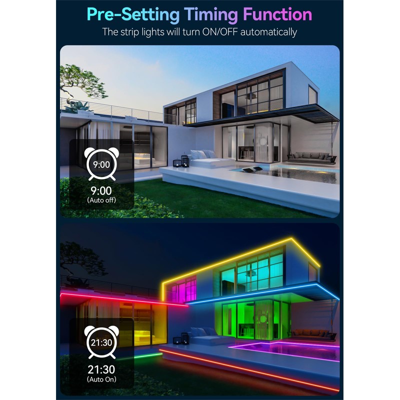 - 【DIY Lighting Effect】Tuya app can DIY individual color segments. You can add all your favorite colors to the led strip lights (for example: red, white, blue), and choose a mode you like (for example: Rianbow, Gradient, jump flash, etc.)