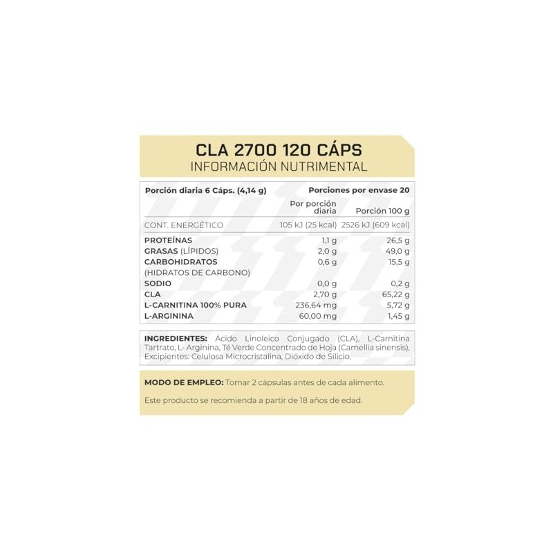 🌟 ⭐ PROWINNER | CLA-2700, Suplemento Alimenticio, Ácido Linoleico Conjugado + L-Arginina, L-Carnitina y Té Verde, 120 Cápsulas de 690mg ⭐ 🌟