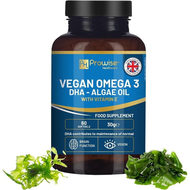 Prowise Vegan Omega-3 DHA from Algae Oil | 60 Softgels with Vitamin E | 400mg DHA + 10mg Vitamin E | 100% Plant-Based | Supports Brain and Eye Health | Pure & Sustainable Sourced