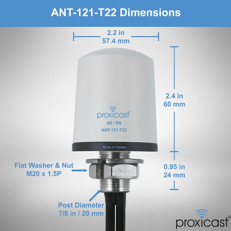Proxicast 2x2 MIMO 5G Antenna - Vandal Resistant Low Profile Omnidirectional Through-Hole Mount - 2 ft Coax - White - Compatible with Cisco, Cradlepoint, Digi, MoFi & Others (ANT-121-T22-W-02)