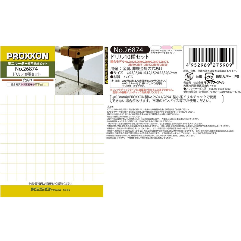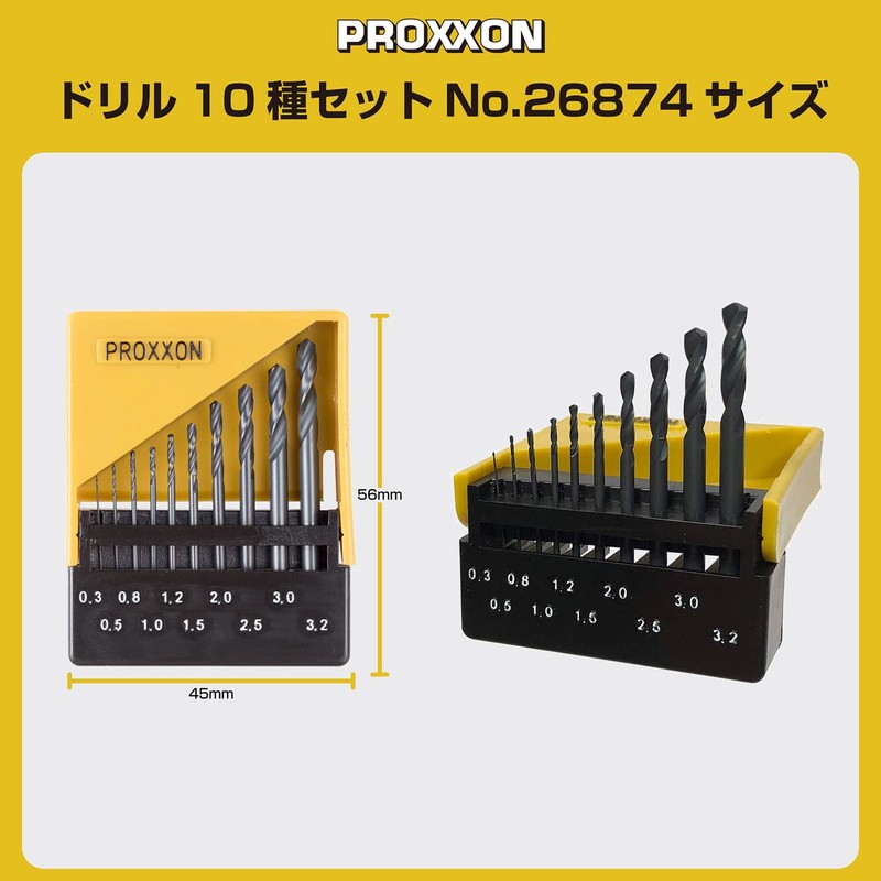 PROXXON No. 26874 Drill Set of 10 Types with Holder