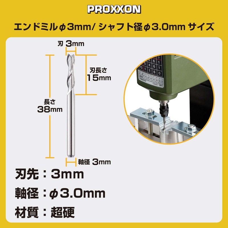 PROXXON No. 27113 End Mill, 0.1 inch (3 mm), Blade Length: 0.6 inches (15 mm), Shaft Diameter 0.1 inch (3.0 mm)