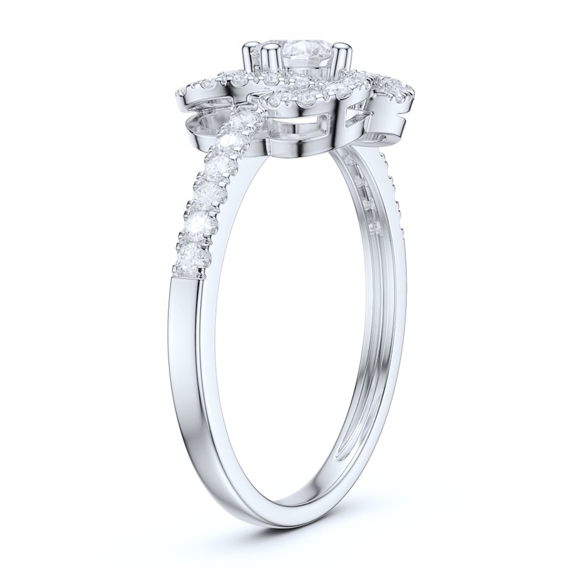 - Design: This ring measures 9.5mm (0.38inches) in width. And it is 4mm high from the top to the inside of the ring. The band thickness is 1.2mm (height from finger), certainly durable for long-lasting wear. The center simulated diamond is 4mm, which can be called 0.25 Carat in diamond weighing. It is also accented with about 44 detailed side stones, making the ring much more brilliant.