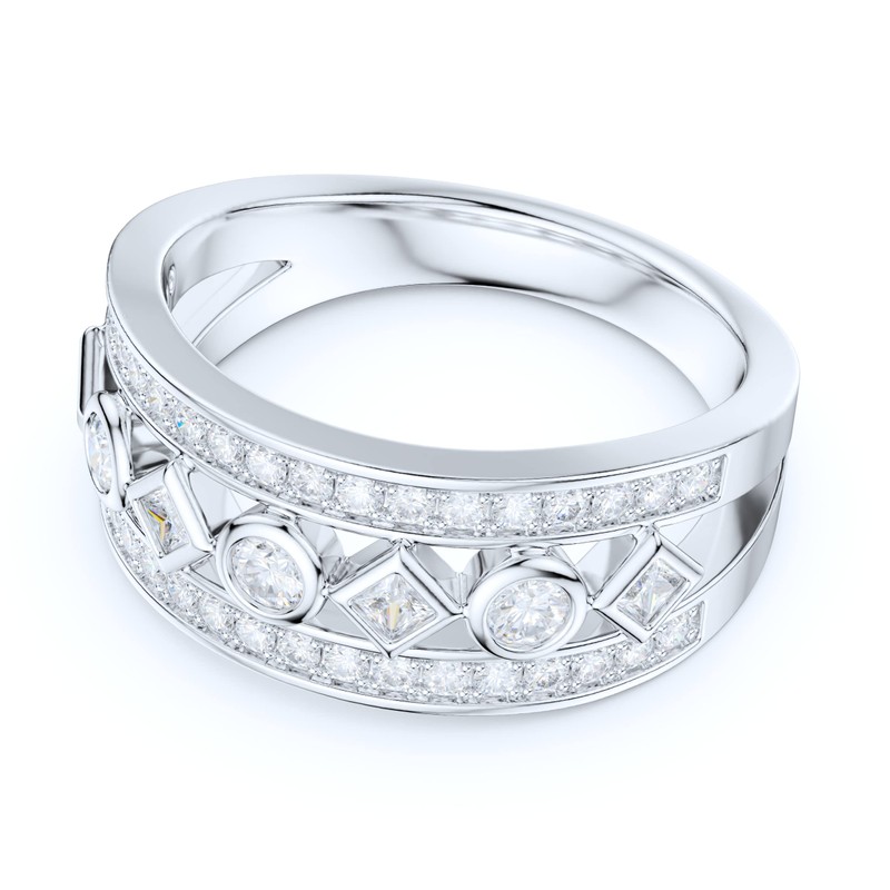 PRSTANI 8mm Wide Solid Sterling Silver Paved Split Shank Simulated Round and Princess Diamonds Bezel Set Ring Wedding Band (10)