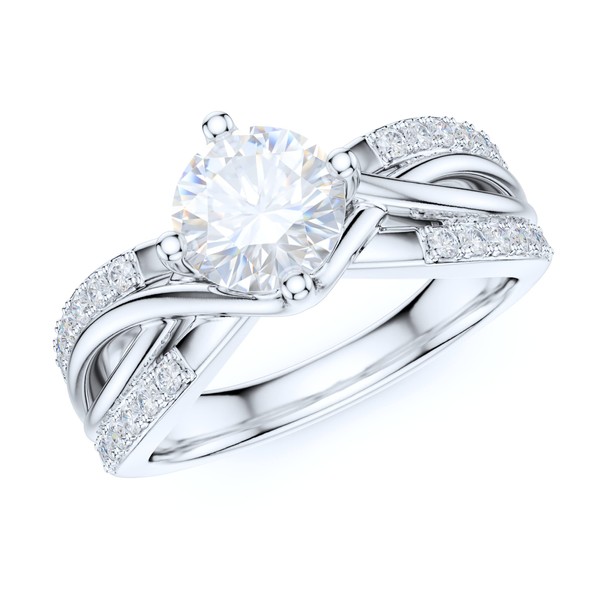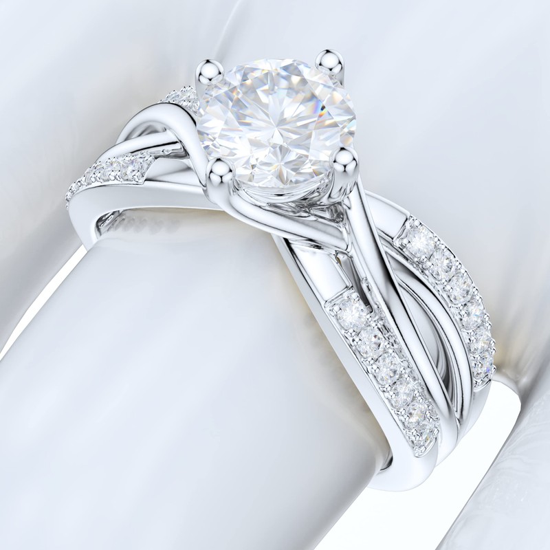 PRSTANI Sterling Silver Fancy Split Intersecting Infinity 1CT Simulated Round Brilliant Cut Diamond Promise Engagement Ring (6.5)