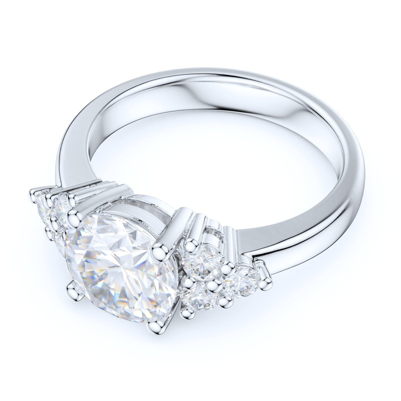 PRSTANI Sterling Silver Triple Three Sidestones 2CT Simulated Round Brilliant Cut Diamond Promise Engagement Ring (9)
