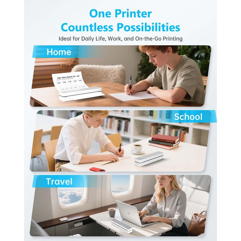 - ✅【Rechargeable & Multi-Device Compatible】Don’t let size fool you,our travel printer built-in 2000mAh rechargeable battery prints up to 240 sheets per charge. Take it on the go with no outlet required. Small printer great for on-the-road printing, business travel, camping, or emergency use—a truly wireless printer.