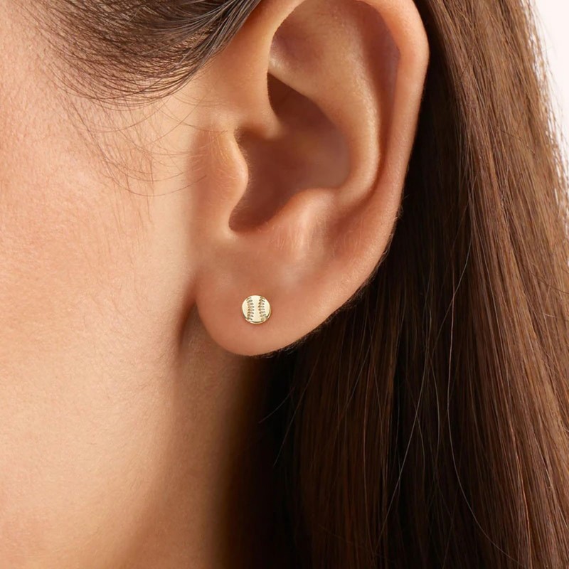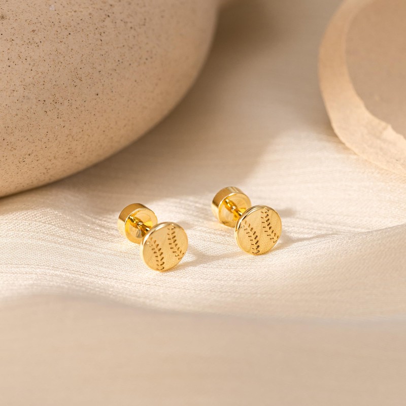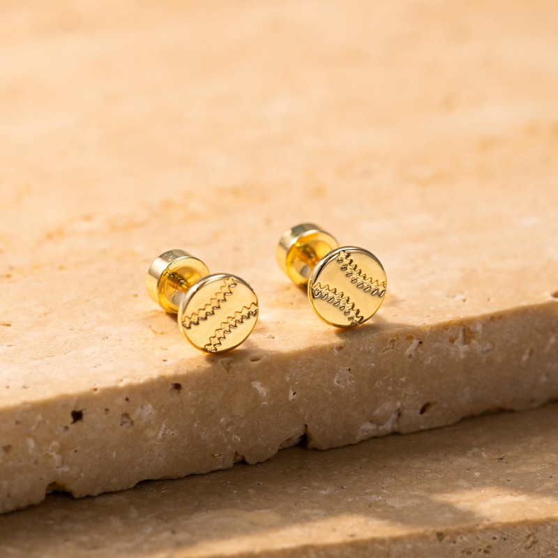 PRTGL Gold Earrings: Dainty Mini Flat Back Baseball Screw Stud Earrings for Women Jewelry