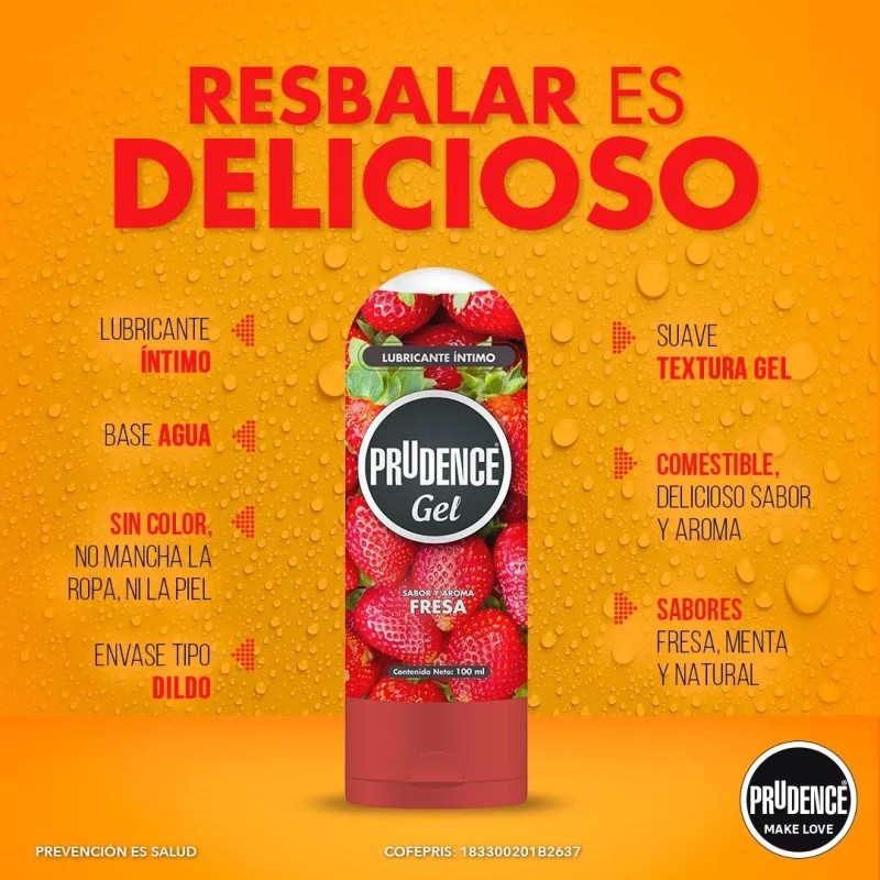 - El Lubricante Íntimo Prudence Gel Sabor y Aroma Fresa 100ml es comestible y apto para uso en zonas anal, vaginal y peneana.