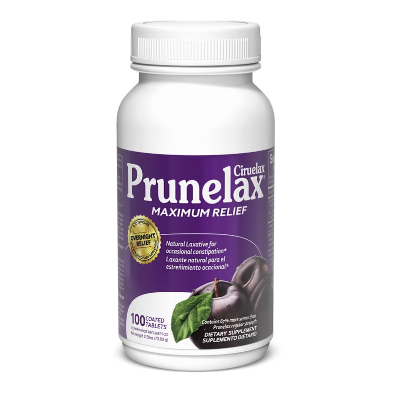 Prunelax Ciruelax Maximum Relief Laxative Tablets with Natural Senna for Occasional Constipation, Senna Extract, Vegan & Gluten-Free, Gentle Overnight Relief - 100ct