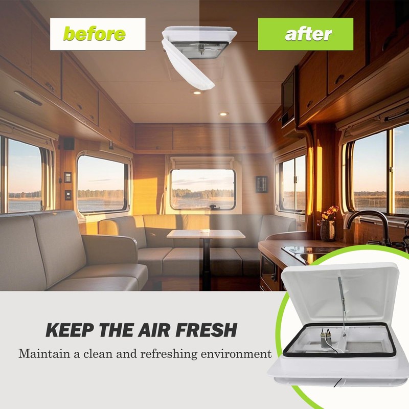 - Great for RV, Campers, Travel Trailers, Caravan, & Motorhome: Some recreational vehicles may not have roof vents mounted and All-weather use is important especially during summer or rainy days to keep the rain out and let fresh air circulating in your RV.