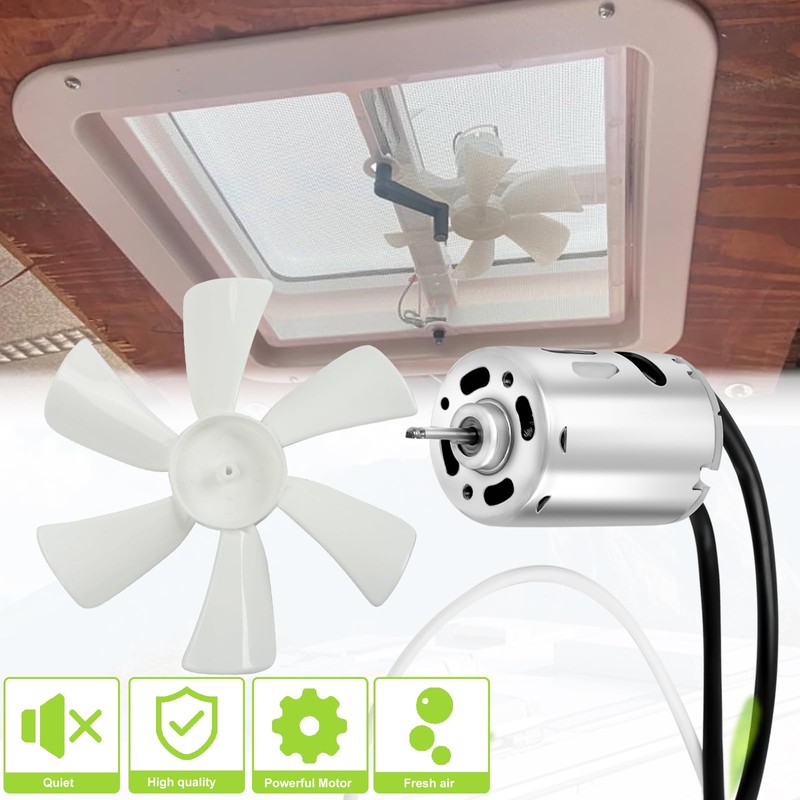 - Simple installation with 2-wire design,White interior trim piece (or garnish) and screws are included for installation. 12 Volt Fan with 6" Blades for mounting the roof vent and it is fixed with butyl tape(No screws).The kit includes printed instructions for a proper installation.