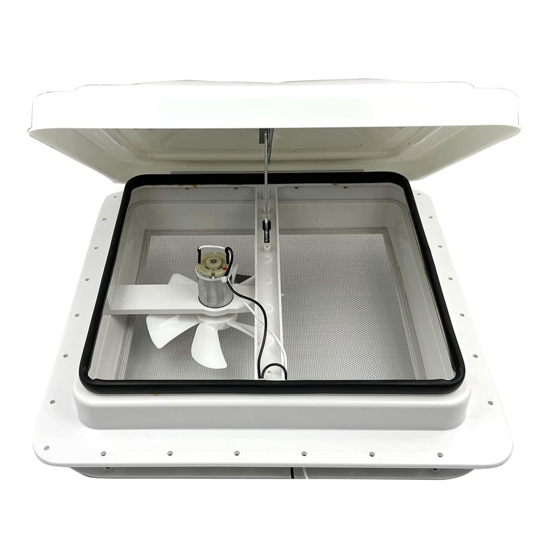 - You can run it while driving, rainy days or as a ceiling fan with the lid closed. You don't even need to worry even on rainy days as there is airflow in this specially designed RV roof fan even when the lid is closed. Translucent white lid lets some light through.