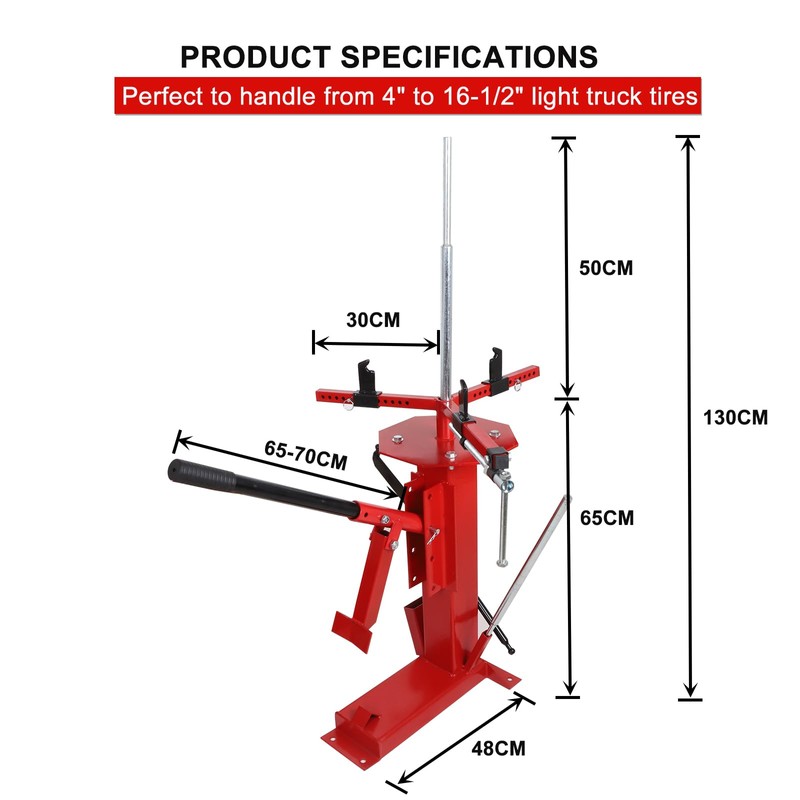 - โถ ๐๐๐๐ ๐๐๐๐๐๐๐๐๐๐๐๐๐: Very suitable for tire sizes from 4" to 16-1/2". It fits almost all types of tires from cars to light trucks.โManualโ doesnโt mean difficult. Suitable for motorcycles, GoCarts, trailers, bicycles, ATVs, yard and lawn equipment, cars and light trucks.Take this tire changer with you anywhere: on the road, to your buddyโs, to and from the shop, etc.