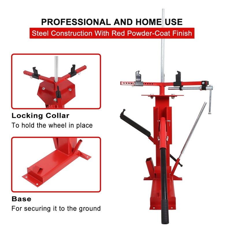 - โถ ๐๐๐๐๐: It is painted with glossy anti-rust and corrosion-resistant paint, which can be used both indoors and outdoors. Also, it is very easy to clean.This tire changer is made of sturdy iron, durable and sturdy to keep its shape. It provides stabilization and balance ideally under heavy wheels, makes work safe and convenient.