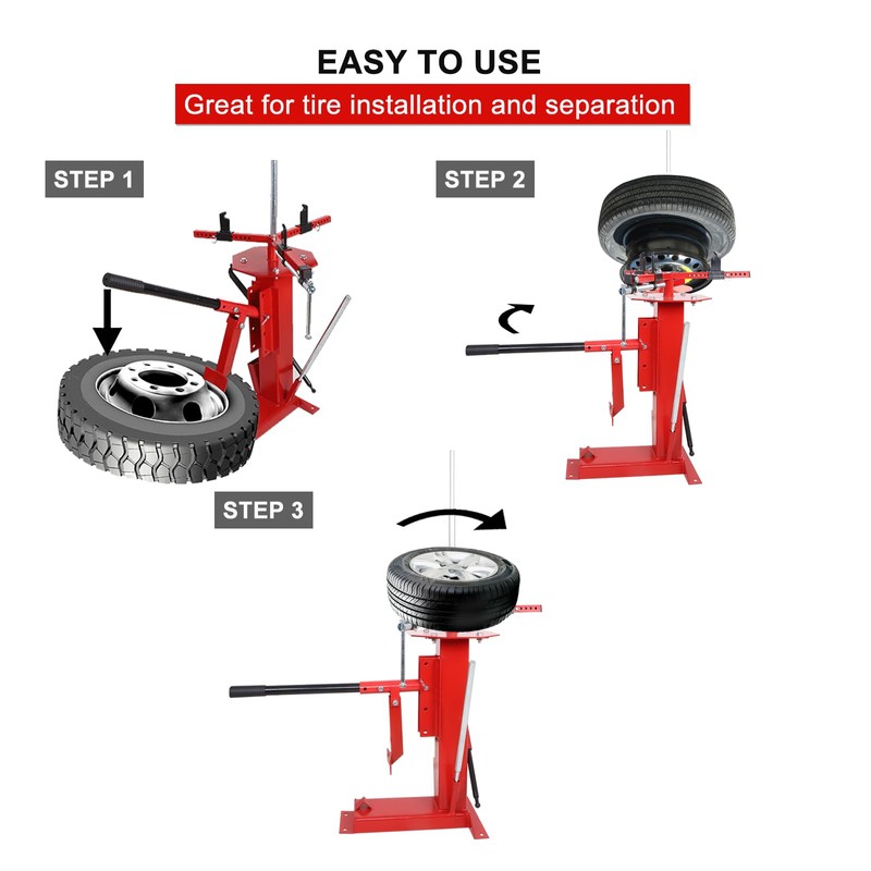 - โถ ๐๐๐๐๐: Remove worn tires from rims and remount them quickly and easily with this portable tire changer. This manual tire changer requires no power hookups or pneumatic lines to operate. The tire changer features all-steel construction for durability.