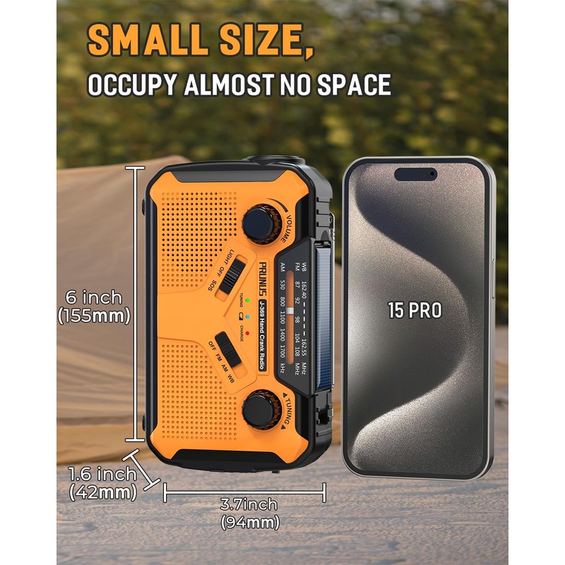 PRUNUS J-369 11100mWh Emergency Weather Radio, AA Batteries/Hand Crank/Solar/USB Charging, NOAA/AM/FM, LED Flashlight and Reading Lamp,SOS Alarm & Flashlight