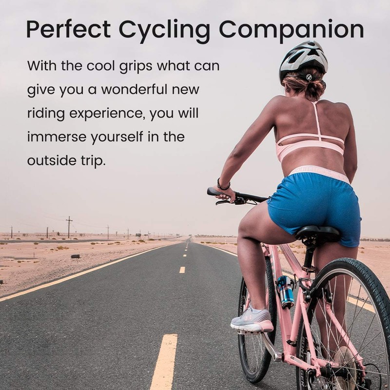 - Ergonomic: The ergonomic bicycle grips handles increase the support surface of your hand, Relieves pressure from your hands, wrists and elbows on long trips.