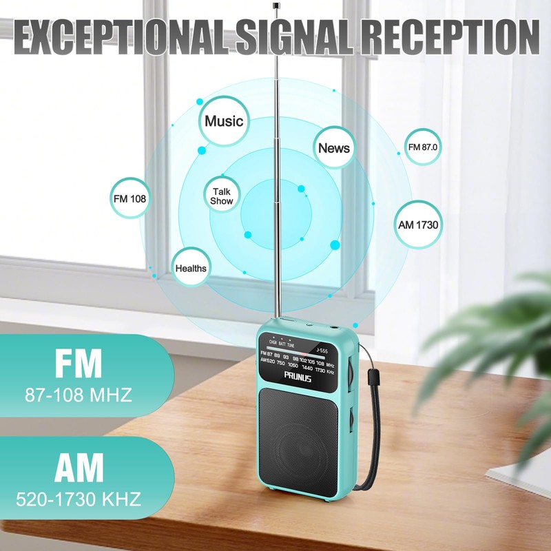 • 【Outstanding Reception Quality】This transistor radio features a 7.7-inch telescopic antenna that enhances and stabilizes signal reception. With a built-in DSP chip, it offers superior interference resistance indoors, ensuring clear audio quality. Supporting a wide range of FM (87-108 MHz) and AM (520-1730 KHz) frequencies, it allows easy access to music, news, talk shows, sports, and other local broadcasts.