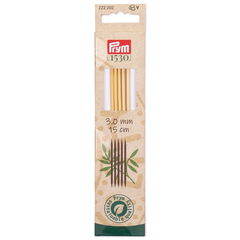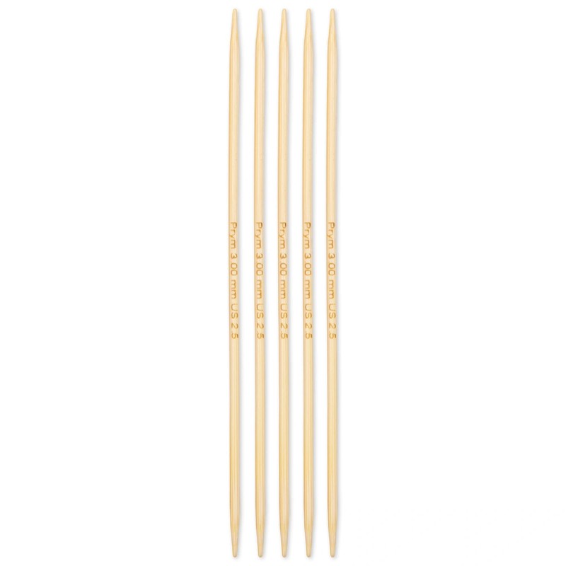 Prym 6" Double Point Bamboo, 3mm Knitting Needles, Natural 5 Count