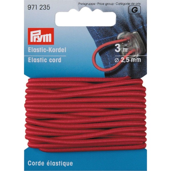Prym 971235 Elastic-Kordel, rot, 60% ED 40% PES, Ø 2,5 mm | 3 m