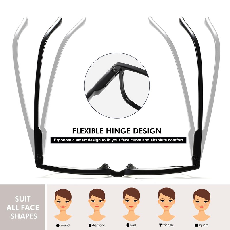 • Cool Flexible Spring Hinge - No matter large, small or medium face, the adjustable spring hinges design can find the perfect fit for different face shapes to reduce press on temples and offer comfortable feeling.
