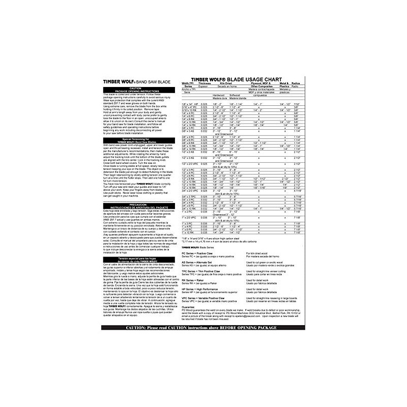 PS Wood Timber Wolf 93 1/2 x 1/2 x 6 tpi band saw blade
