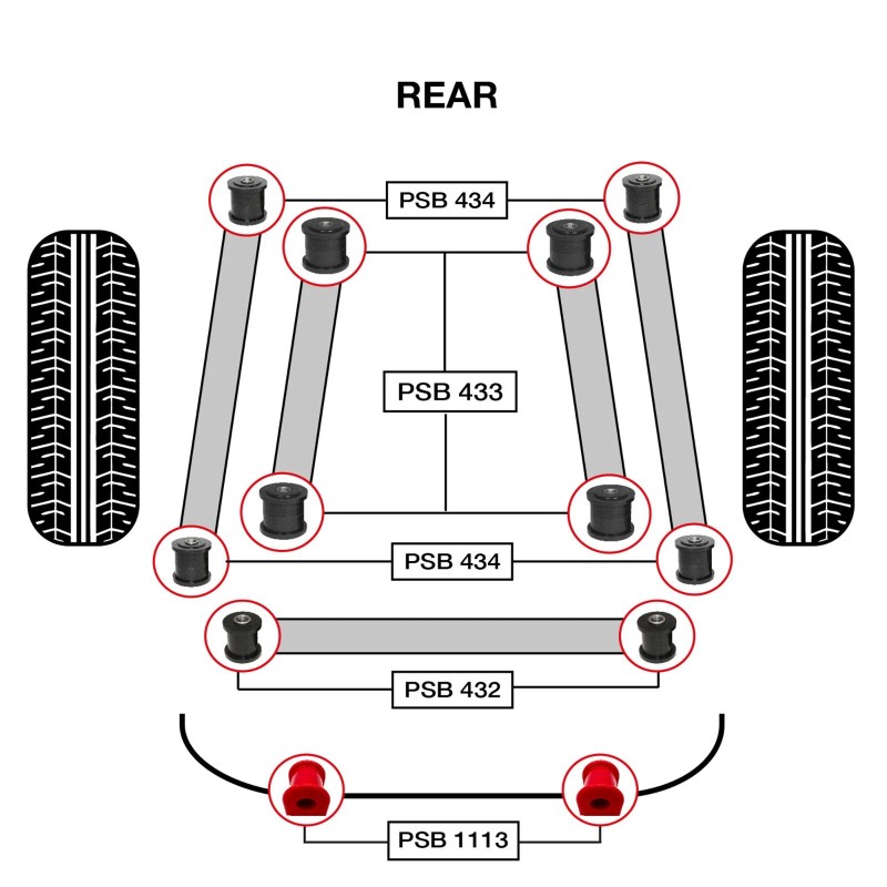 12x Toyota 4 Runner (10-23) Rear Polyurethane Bushings Kit (Part No. PSB 434 433 432 1113)