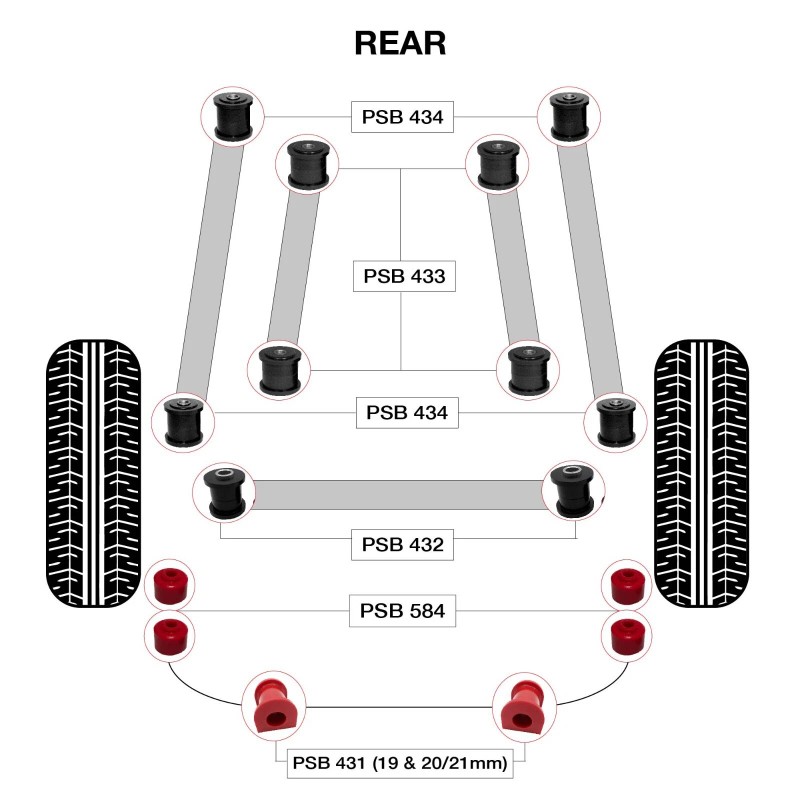 16x Toyota FJ Cruiser (07-09) Full Rear Polyurethane Bushings Kit- Sway Bar 20mm (Part No. PSB 434 433 432 431-20 584)