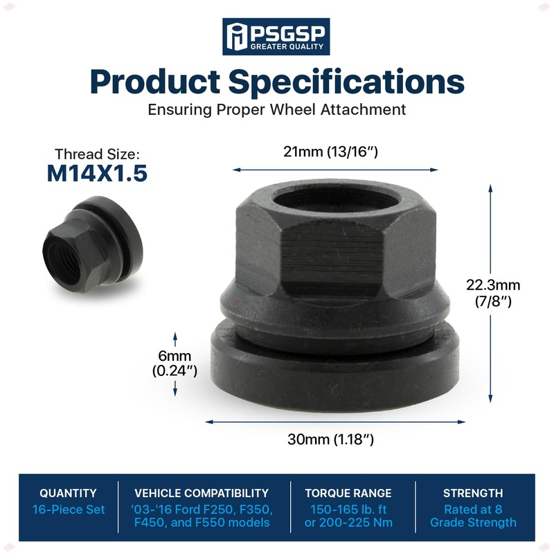 PSGSP Black M14x1.5 Wheel Lug Nuts 16pcs for 2003-2016 Ford F250 F350 F450 F550, 2003-2019 F53, Two-Piece Flanged Flat Face OEM Style for Factory OEM Wheels, Fit 2C2Z1012AA