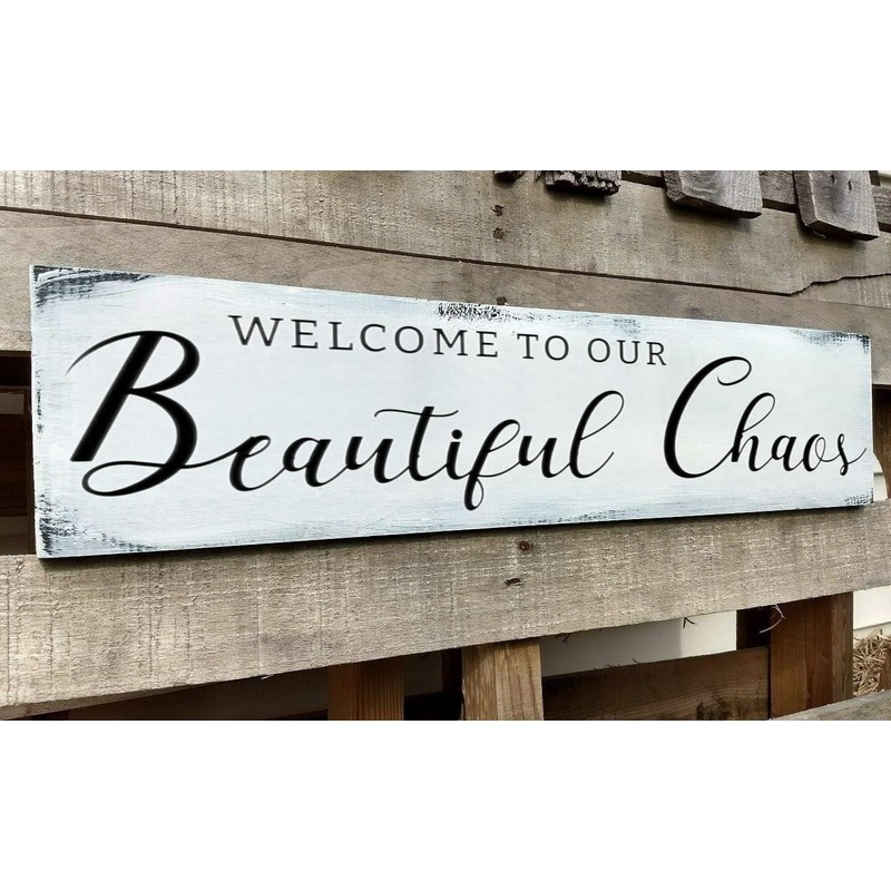 PSINGSZQ Welcome to Our Beautiful Chaos Sign, Farmhouse Wood Sign, Home and Living Room Decor Housewarming Gift Spring Home Decor (Beautiful Chaos) 4x16 Inch