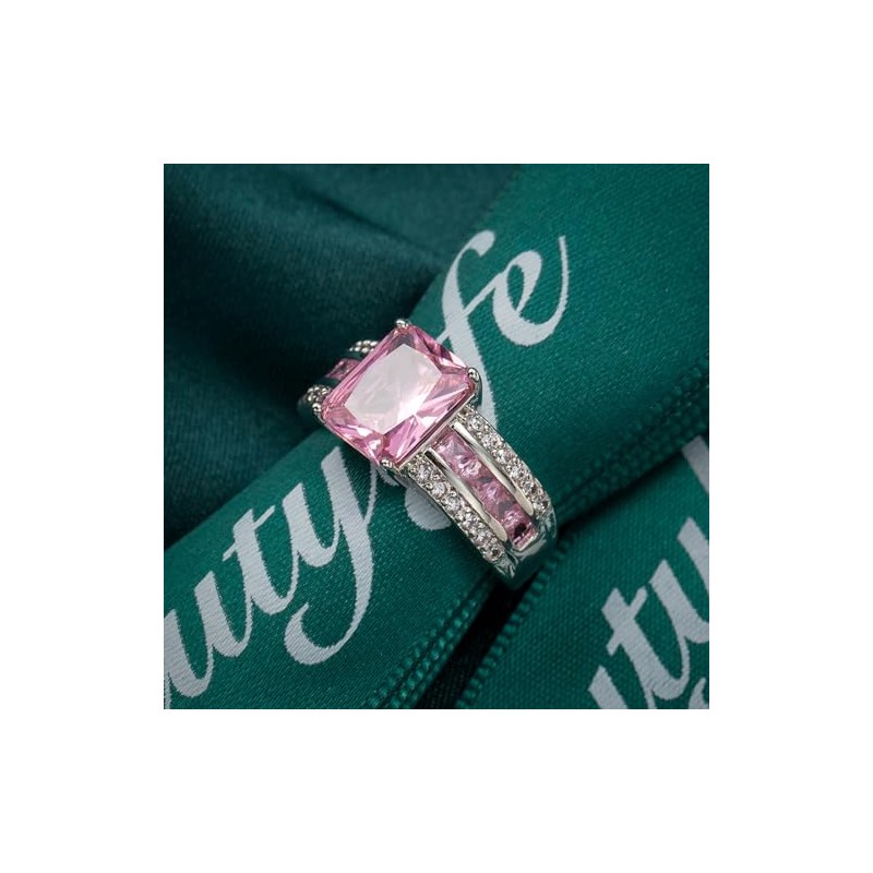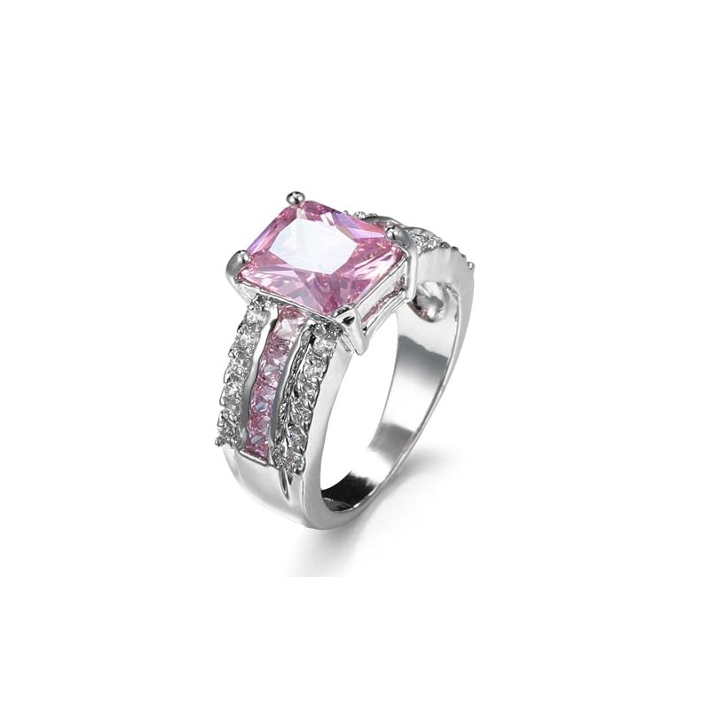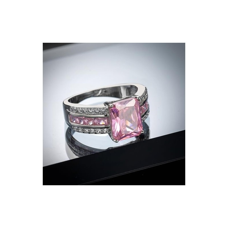 Psiroy Women's 925 Sterling Silver Plated Emerald Cut Simulated Pink Topaz Ring Size 7