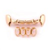 Psivika Gold Plated Shiny Hip Hop Teeth Grillz Caps Iced Out CZ Top and Bottom Vampire Fangs Grillz for Men and Women (Rose Gold)