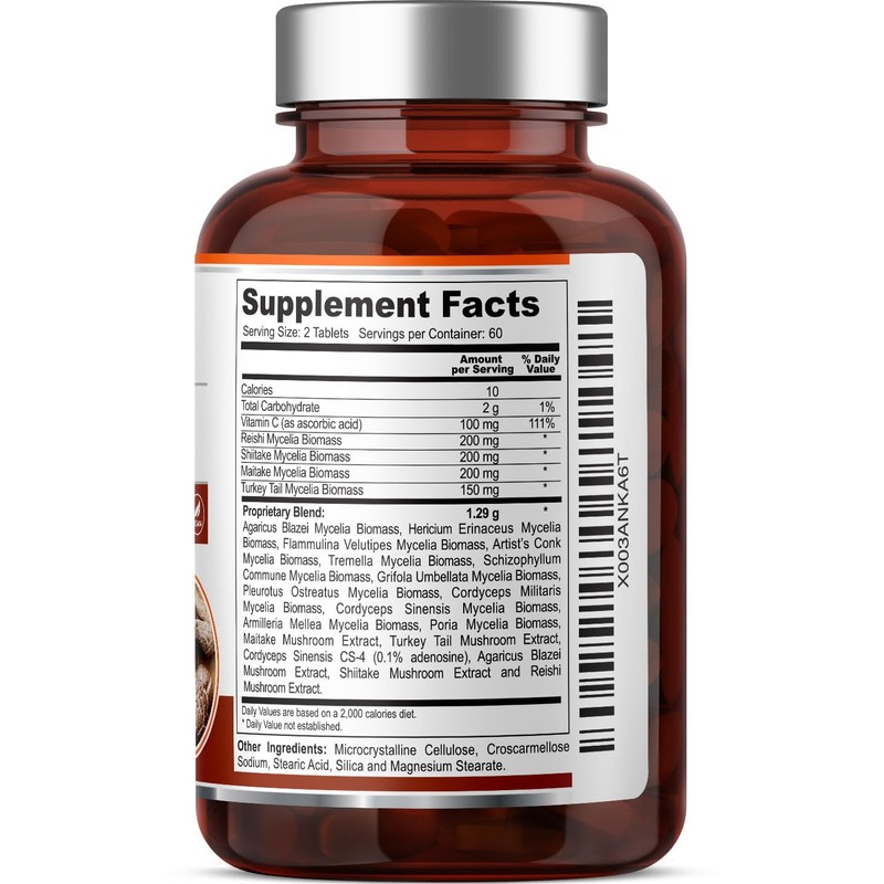 Each tablet of Biogenuine PSK-16 contains 1070 mg of our proprietary mushroom blend, which includes popular varieties such as Reishi, Maitake, and Shiitake, as well as lesser-known but equally potent species like Armilleria Mellea and Flammulina Velutipes. The blend is also composed of Cordyceps Militaris, Hericium Erinaceus, Turkey Tail, Tremella, Poria Sclerotium, Schizophyllum Commune, Grifola Umbellata, Cordyceps Sinensis, and Artist's Conk, making it one of the most extensive and diverse mushroom formulas on the market.