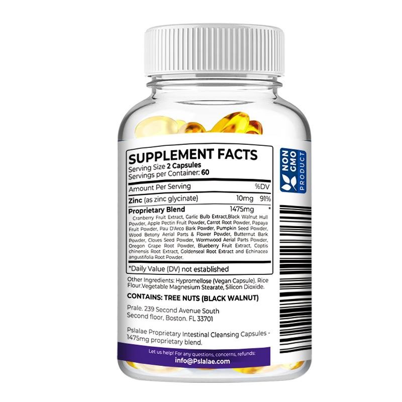Pslalae - Wormwood Extract Vegetarian Capsules - Powerful Natural Formula, Contains Wormwood, Black Walnut, Golden Sea, PAU D'Arco, Cloves, Garlic, etc. - Human Intestinal Guardian (Non-GMO) Cleansing - Gentle Natural Formula