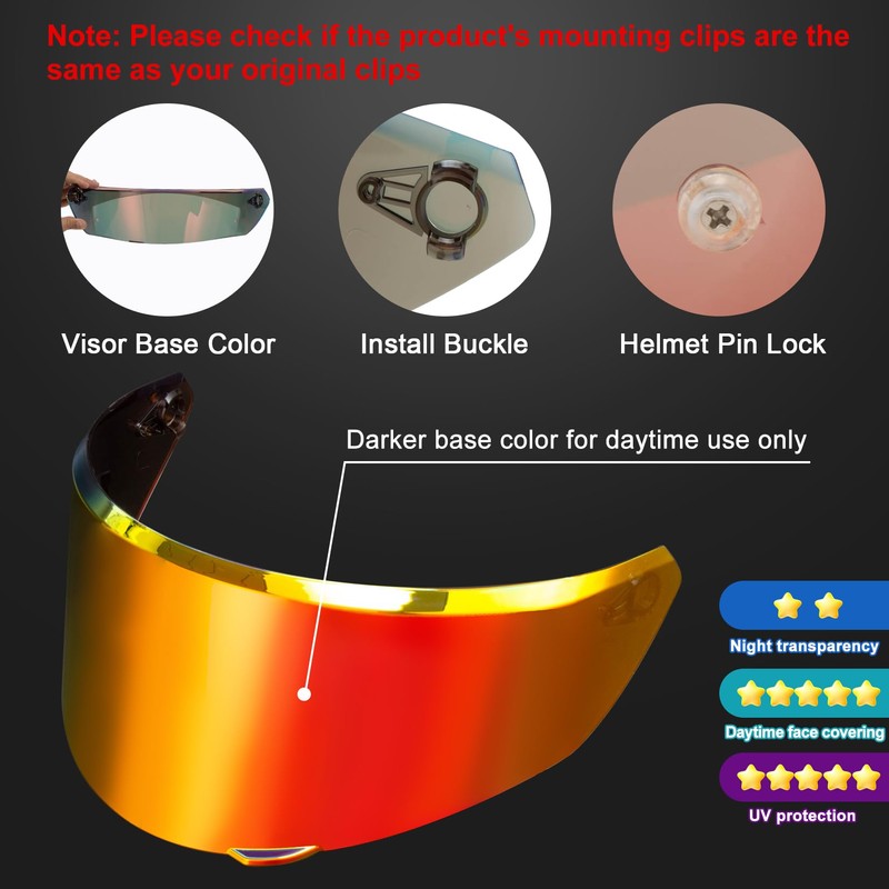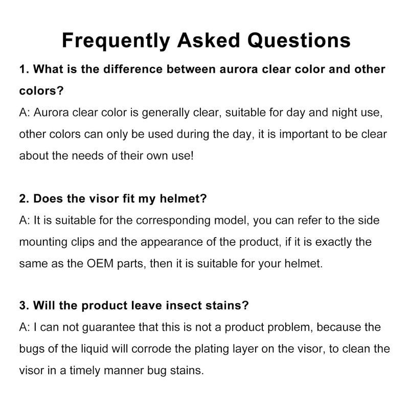 2.helmet shield are produced in batches. The background color of the helmet visor may be slightly different in different batches. The color adjustment is uncontrollable. The pictures are for reference only. Everything is subject to the actual object. For those who have extremely strict color difference requirements, please Buy with caution.