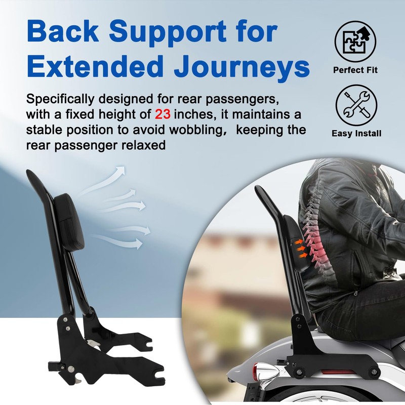 - Fitment: Fits for Low Rider FXLR FXLRS FXLRST FXRST Sport Glide FLSB 2018-2025. With a fixed height of 23 inches, the backrest maintains a stable position to avoid wobbling, ensuring consistent support for rear passengers