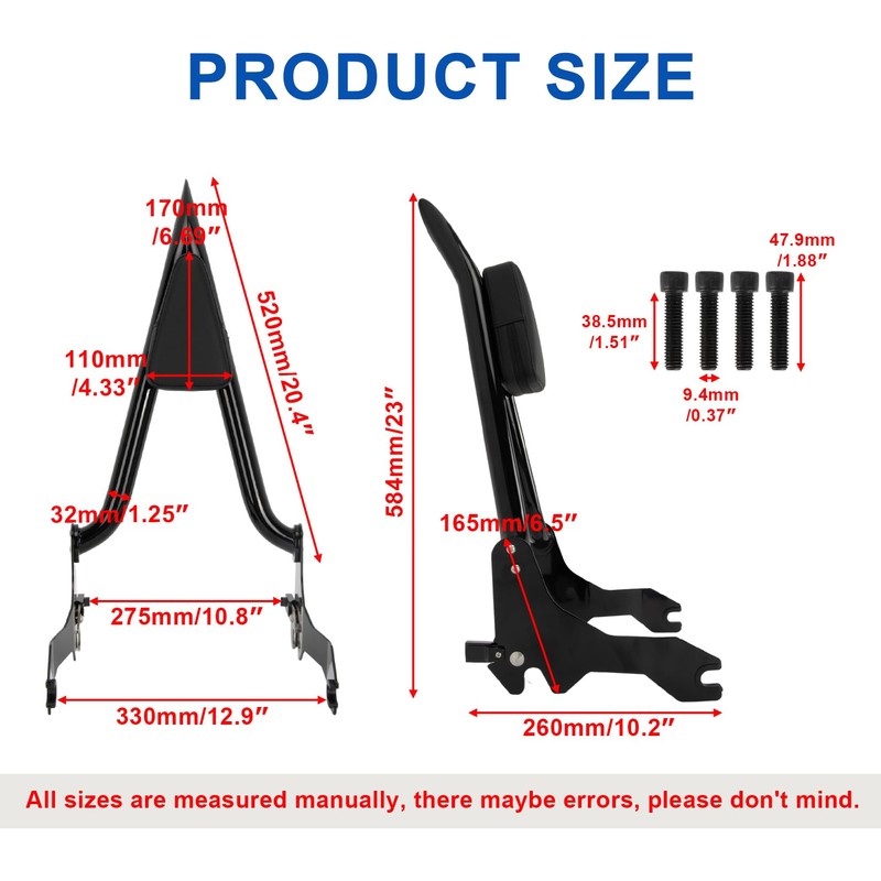 - Package Included: 1x Rear Passenger Sissy Bar Backrest Assembly(As pictures shown)