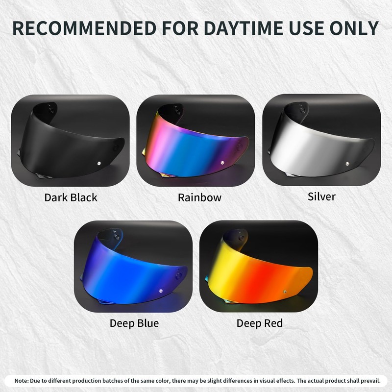 2.helmet shield are produced in batches. The background color of the helmet visor may be slightly different in different batches. The color adjustment is uncontrollable. The pictures are for reference only. Everything is subject to the actual object. For those who have extremely strict color difference requirements, please Buy with caution.