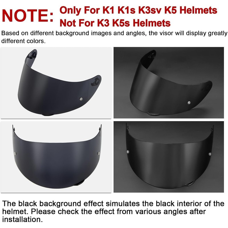 • 【Fitment】Our helmet visor fit for k1/k1s/k3sv/k5 helmets,.The k1 tinted visor is 100% aftermarket.NOT OEM part.(Recommended for daytime use only)