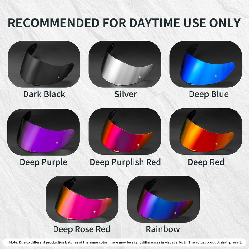 2.helmet shield are produced in batches. The background color of the helmet visor may be slightly different in different batches. The color adjustment is uncontrollable. The pictures are for reference only. Everything is subject to the actual object. For those who have extremely strict color difference requirements, please Buy with caution.