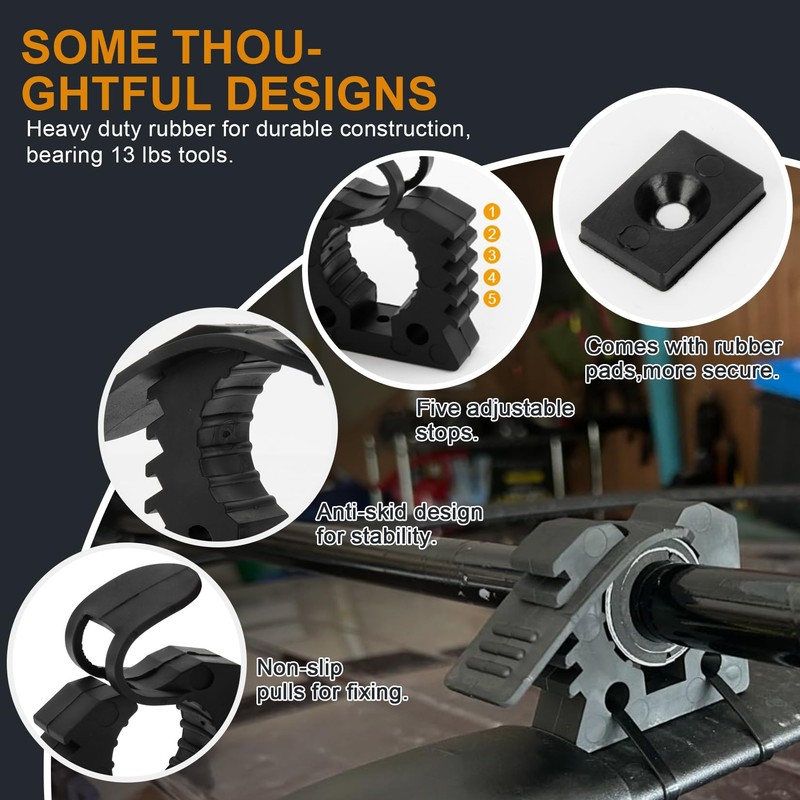 PSLER Shovel Holder for Truck Quick Release Rubber Clamp Mount Shovel and Axe Mount for Truck Bed Roof Rack Trailer Off-road Vehicle UTV Universal for diameter tools 1-1/7'' to 1-3/7'' 2PC