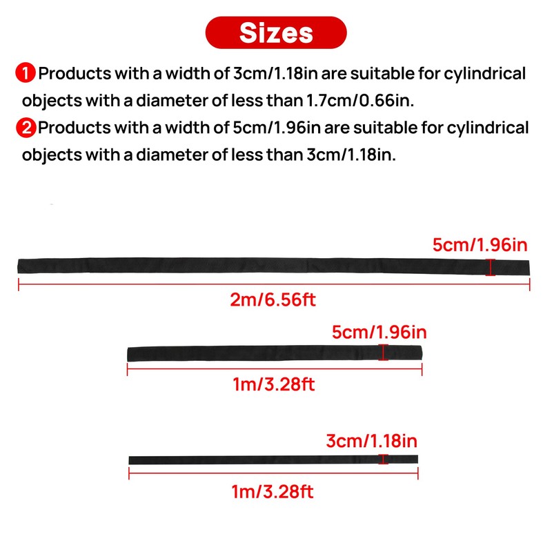 Products with a width of 5cm/1.96in are suitable for cylindrical objects with a diameter of less than 3cm/1.18in.